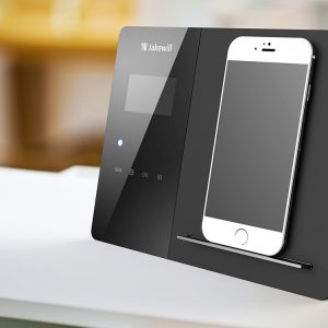 - 細節(jié)人性化設計:玻璃面板采用防眩光處理,強光下也能清晰查看設備狀態(tài);藍色狀態(tài)指示燈醒目置于控制區(qū),直觀反饋設備運行狀態(tài);手機托槽采用金屬防滑設計,取放更便捷;品牌標識 “Jakewill” 采用絲印工藝,強化認知的同時提升視覺精致度;無任何外露按鈕與接口,讓設備保持純粹極簡質感。